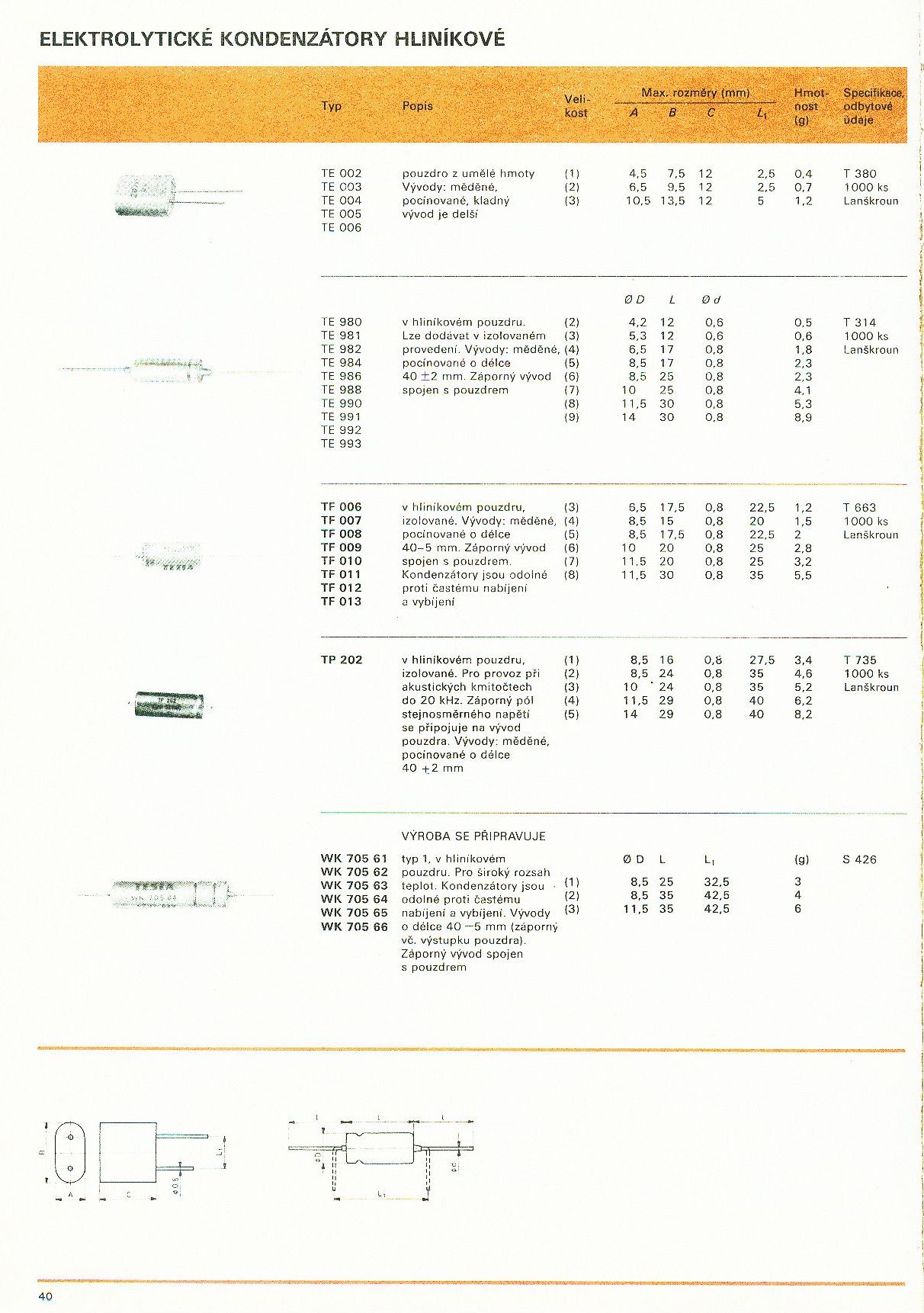 Katalog elektronických součástek - TESLA TE984 (Kondenzátor elektrolytický)