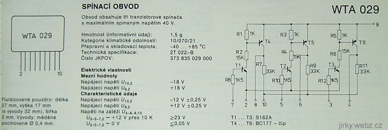 Katalog elektronických součástek - TESLA WTA029 ( Spínací obvod)