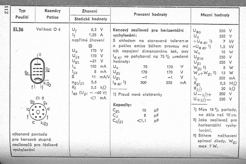Katalog elektronických součástek - TESLA EL36 (Elektronka)